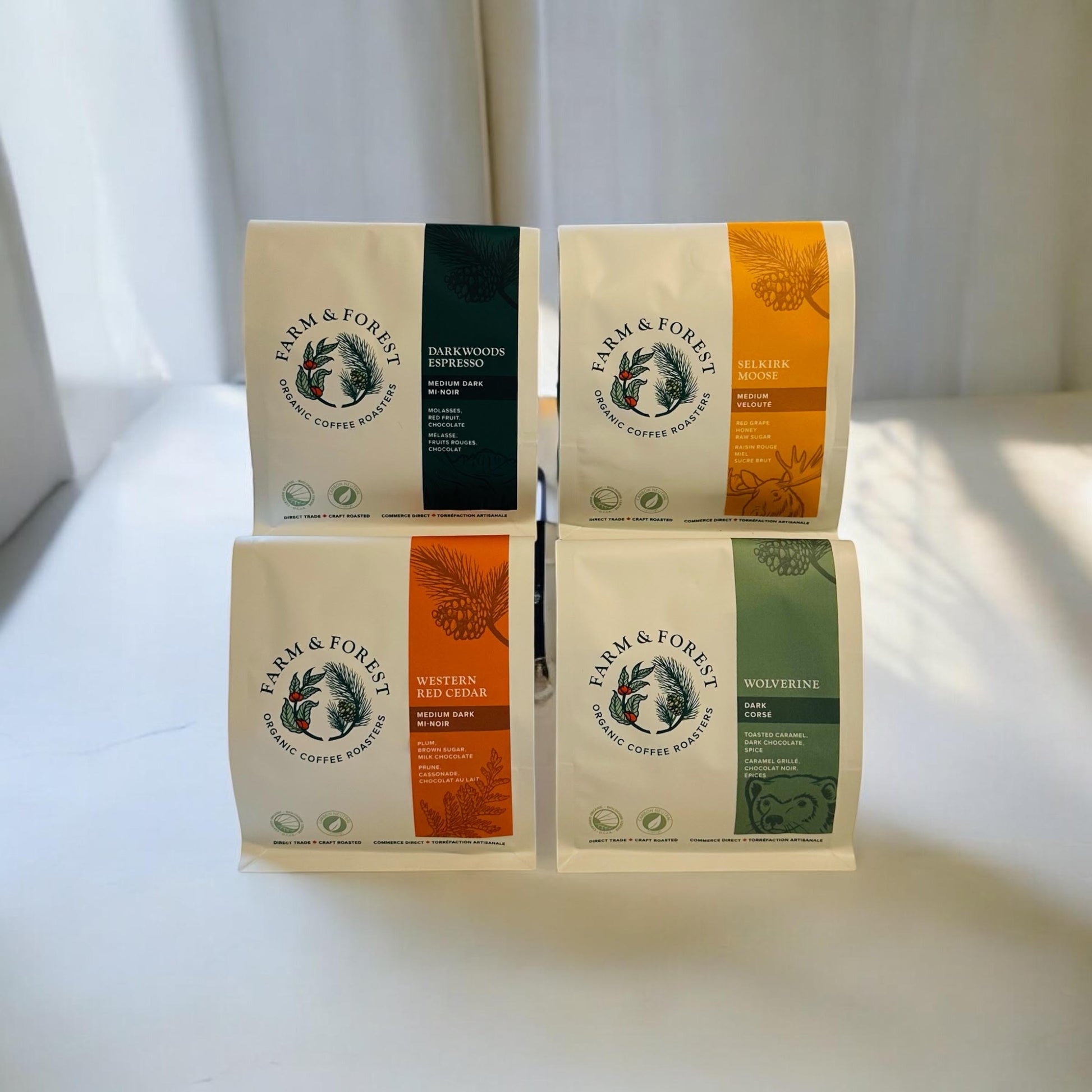Sampler Pack 4x 200g: Wolverine, Western Red Cedar, Selkirk Moose, Dark Woods Espresso