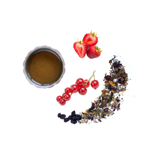 Sencha, Genmaicha, Japanese Bancha, Kukicha, Gyokuro, red currants, strawberry pieces, natural currant aromaInstructions: