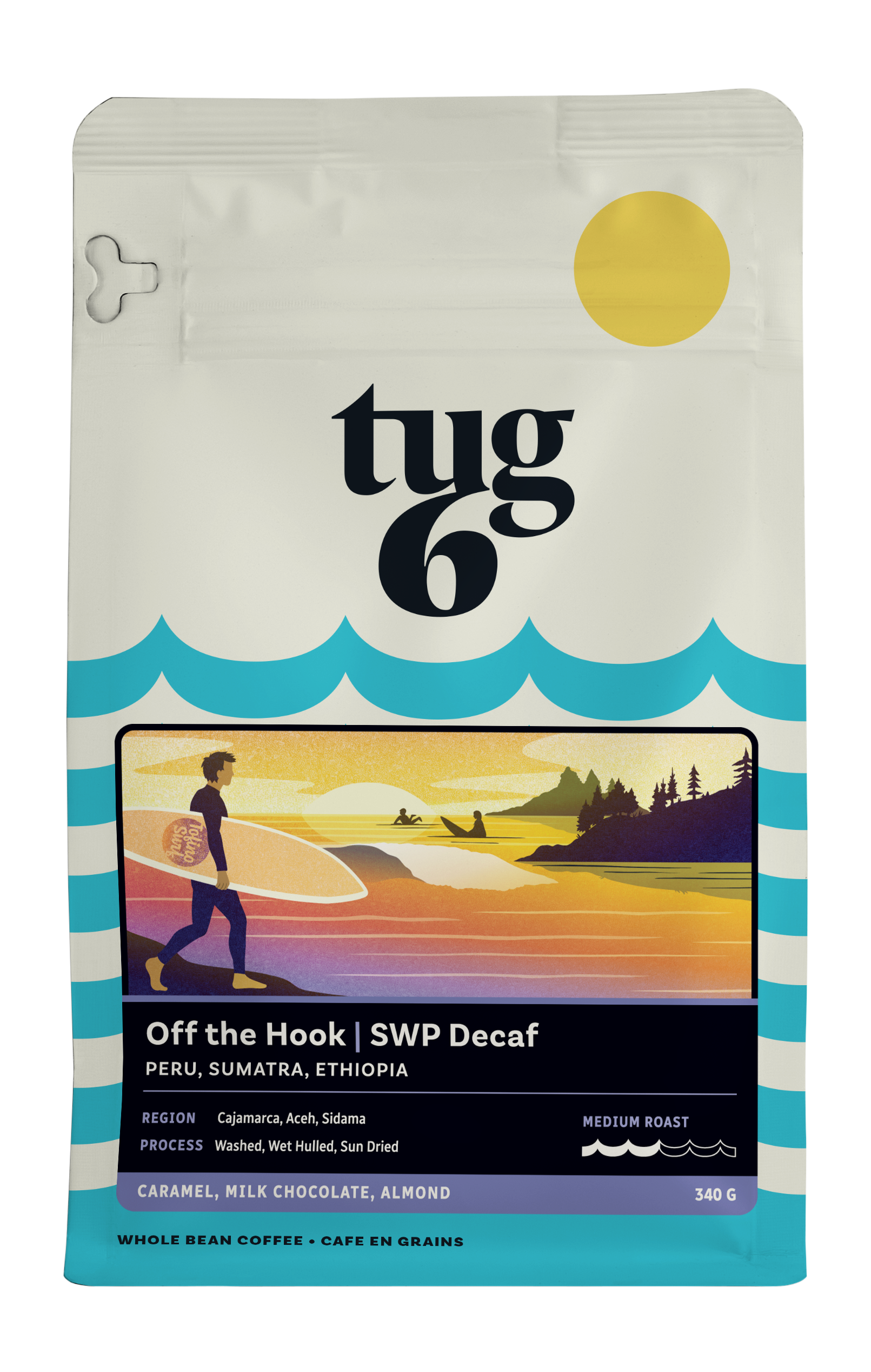 Like an endless set of gnarly waves rolling in at sunset, this coffee has all the stoke, all the flavour, and none of the wipeouts (or caffeine jitters). Grab your board—or mug—and get ready to carve.
